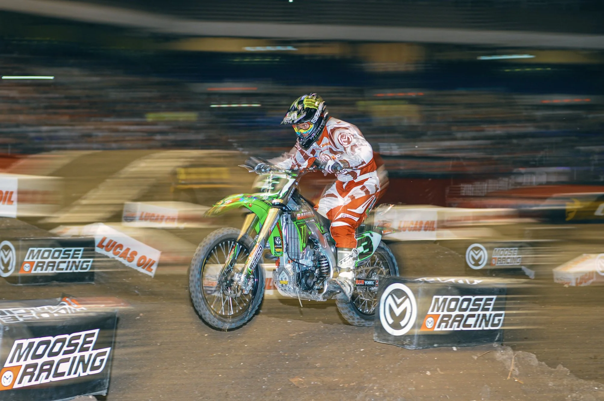 Josh Demuth going through the whoop section during qualifying at the San Antonio Arenacross race. Circa 2010 (Nikon)